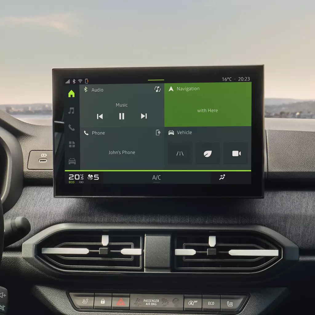 Una habitabilidad y capacidad de carga dignos de una categoría superior. Sus generosas dimensiones interiores corresponden más bien a una categoría superior. En la parte trasera, el ancho a la altura de los codos, de 1436 mm, permite que se asienten cómodamente 3 adultos o la instalación de 3 asientos para bebés, 2 de los cuales gracias al sistema ISOFIX. La capacidad del maletero sigue sin rival si tenemos en cuenta el precio y lo compacto que es el vehículo. Practicidad y modularidad siguen estando presentes gracias a la banqueta abatible de 1/3 - 2/3. Se ha mejorado el habitáculo para ofrecer más espacio de almacenamiento, sobre todo, con la incorporación de un compartimento central, espacio de almacenamiento en las puertas delanteras con capacidad para, por ejemplo, una botella de 1,5 litros y la incorporación de más espacio de almacenamiento en las puertas traseras.